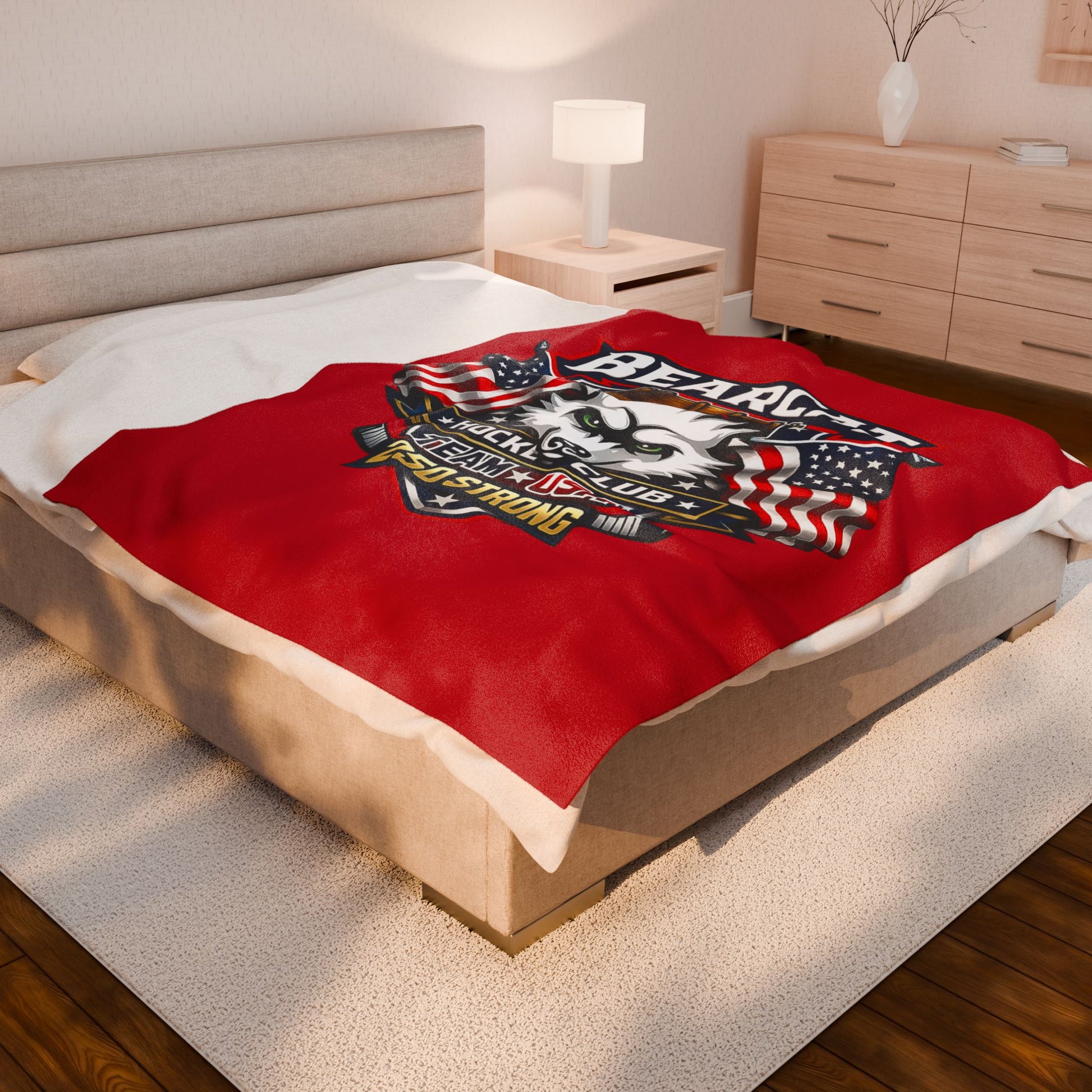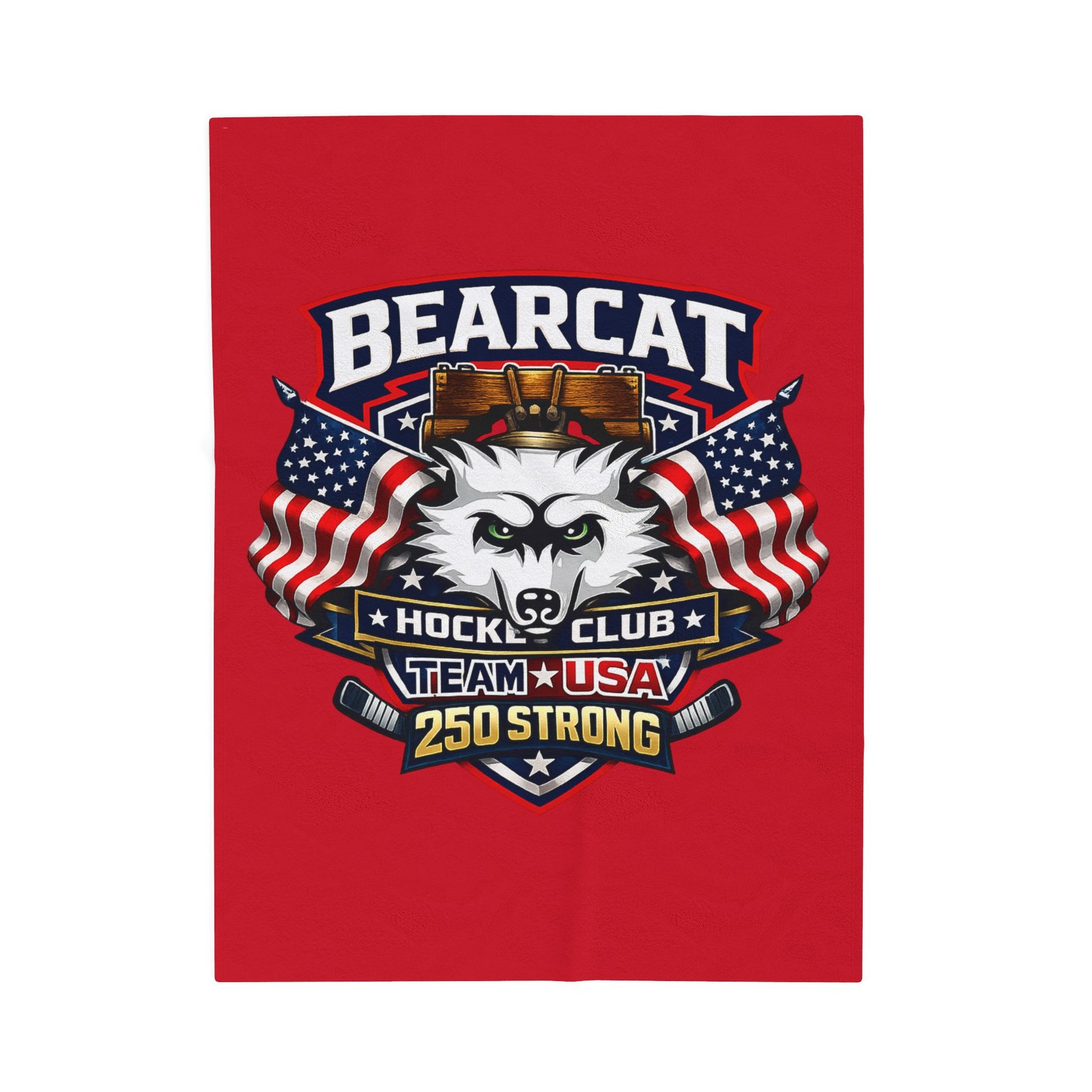 Bearcat Hockey Club Team USA Velveteen Plush red Patriotic Blanket